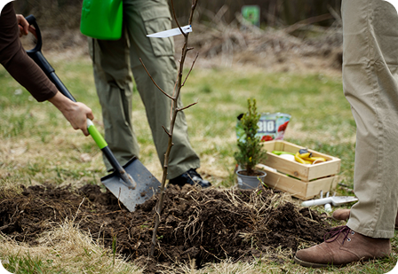 Planting trees and maintaining green spaces in local communities to promote environmental sustainability, improve air quality, and create a healthier ecosystem.